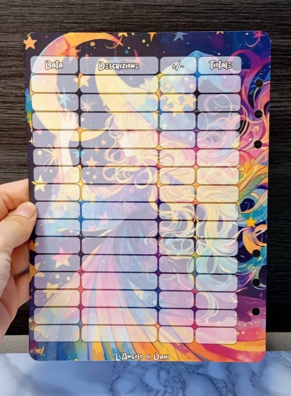 Plastificata e riutilizzabile, con retro Budget Sheet per tenere sotto controllo i tuoi risparmi.